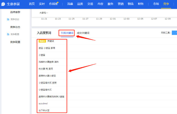在竞品的流量来源中,我们可以看到竞品的主要流量来源是从哪个渠道进来的,主要是做付费的还是免费的,是做首页流量、搜索流量还是直通车流量等。