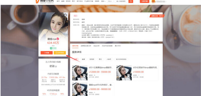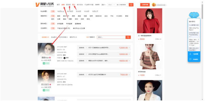 阿里V任务就像是给我们开了一个单独的资源对接平台,这个网站上面有很多的达人,也就是我们的常说的“网红”,他们是有很大的粉丝基础的,那么这些达人通过做推广,比如直播推广,图文推广,发微淘等等方式,来跟商家进行合作,通过帮助商家进行推广产品来获取提升,这个就相当于我们找人来帮我们推广产品,有点跟淘宝客类似。