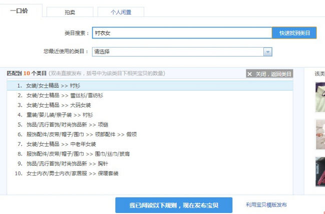 2.发布宝贝的时候类目一定要写正确(发布宝贝进入够会有一个快速找到类目,可以利用这个找到你产品所属的类目)